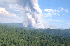 The 5,300-acre Oregon Gulch Fire crossed into California north of Copco Lake this evening. It also exited Jackson County and entered Klamath County in the vicinity of Grizzly Mtn. A power transmission line just north of the Oregon border was damaged.